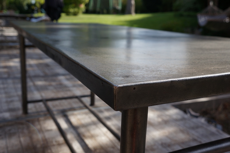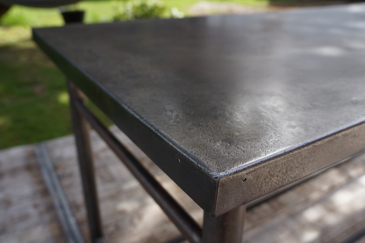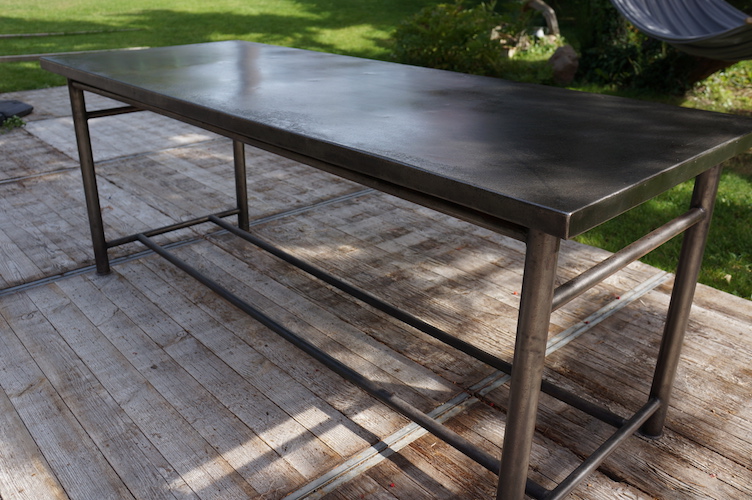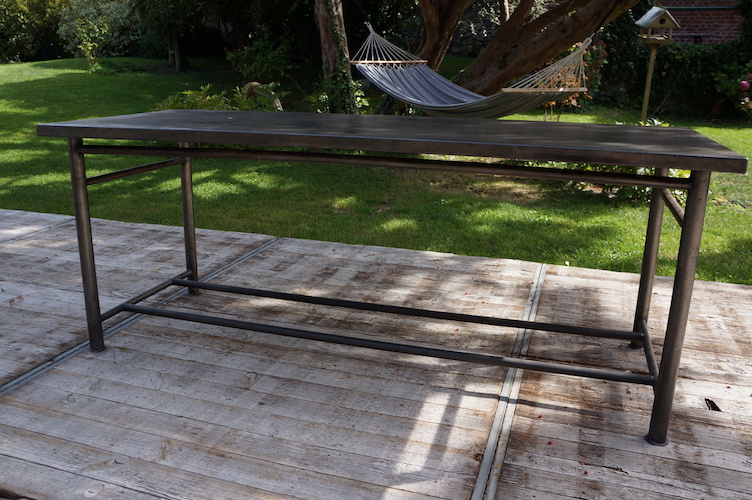 Table de métier LOUISE. Ancienne table de métier aérogommée, patinée et vernie. Pièce unique.